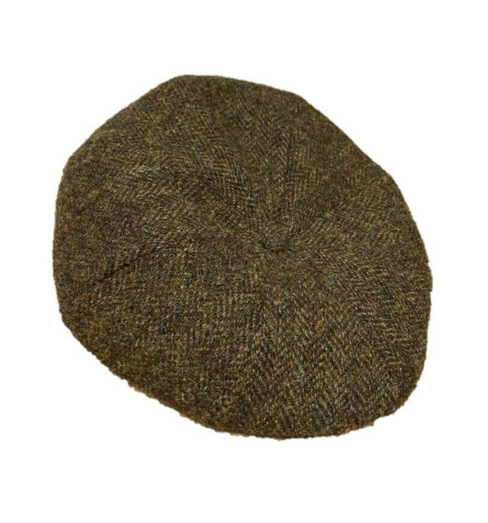 Genuine Harris Tweed baker boy cap. The Arran 8-piece Harris Tweed flat cap has a luxury satin lining and matching grosgrain sweatband. Classic design and genuine Harris Tweed fabric combine to create a truly exceptional hat. Handwoven in the Outer Hebrides using local wool, this classic Scottish fabric is now enjoying a renaissance. With luxury polyester satin lining and stictched-down peak.
