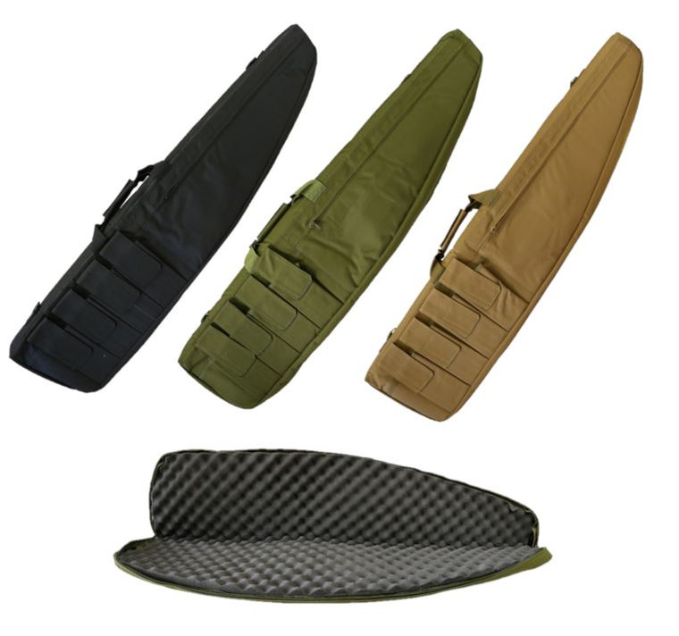 A gun case in Black, Green or Coyote. With plenty of extra pockets for accessories and pellets or BBs and also with a removeable foam lining.