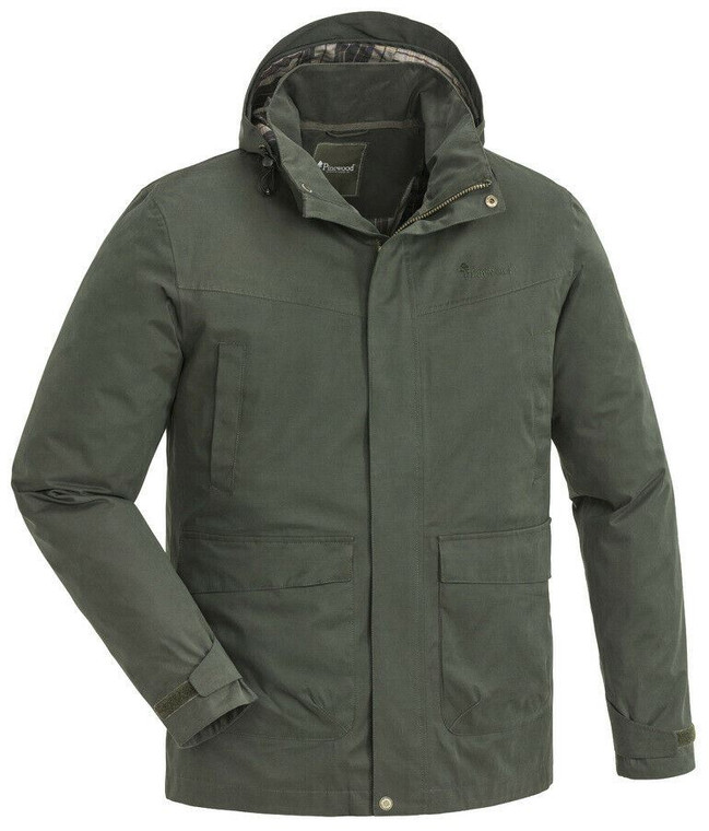 Pinewood Eastmain Jacket in green. A two-layer windproof and waterproof outdoor jacket with two lower pockets, two hand warmer pockets and one inside pocket.