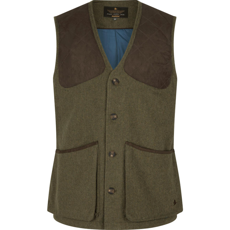 The Hillside Waistcoat for men seamlessly combines classic design with practicality. Crafted from a 40% wool and 60% polyester blend, it exudes timeless elegance. Accented by faux suede trim on quilted shoulder patches, it provides ample storage with large front pockets suitable for cartridge boxes. Tailored fit is ensured with waist adjusters at the back. Perfect for those seeking a blend of tradition and function in their shooting attire.