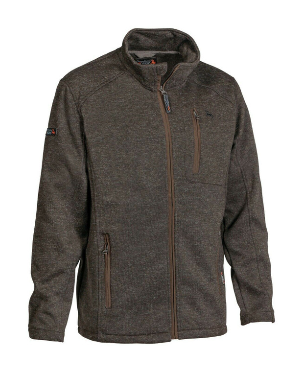 Verney Carron Mouflon Jumper in Brown. A full zip jumper with two zipped lower pockets and one zipped chest pocket.